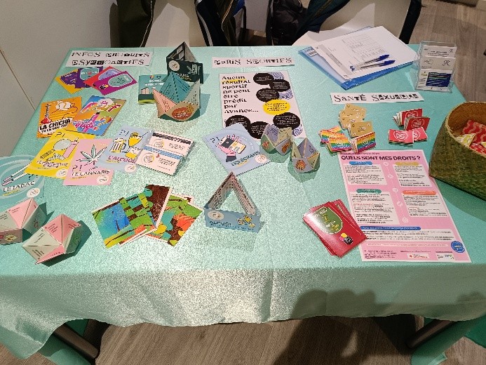 Grâce aux nombreux intervenants d’AIDES, d’AREMEDIA, du Centre IPC, du CPTS du 8ème, du CSAPA La Corde Raide, de la Ligue Nationale contre le Cancer, du Passage/Croix Rouge Française et des Pys Nomades, les nombreuses résidentes, qui sont passées de stand en stand, ont pu s’informer et échanger en matière de santé mentale, bucco-dentaire et alimentaire. Elles ont aussi été sensibilisées aux questions de santé sexuelle et de prévention des addictions.